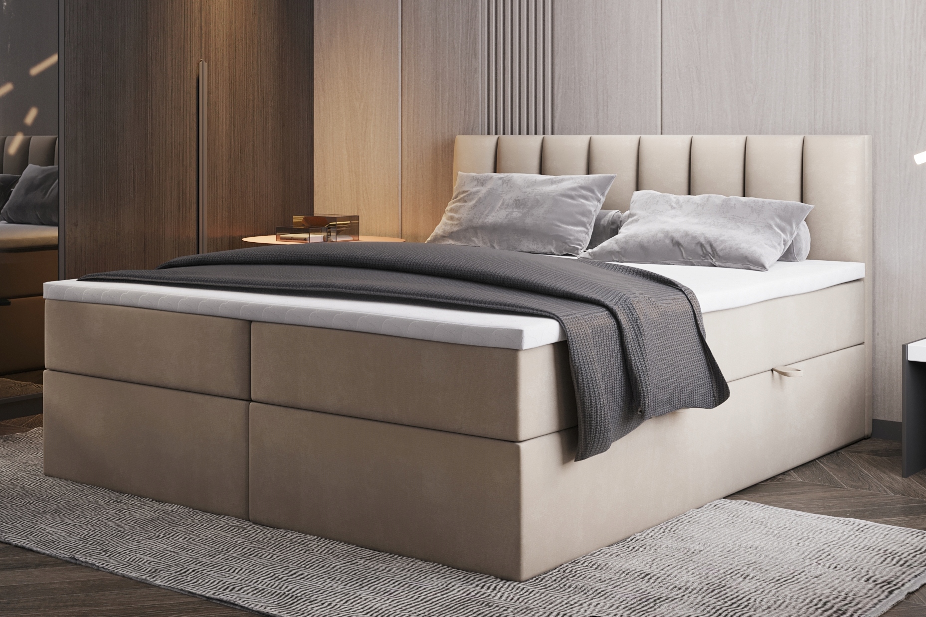 Łóżko kontynentalne 160×200 Palermo Tapicerowane Beżowe 2 pojemniki OD RĘKI